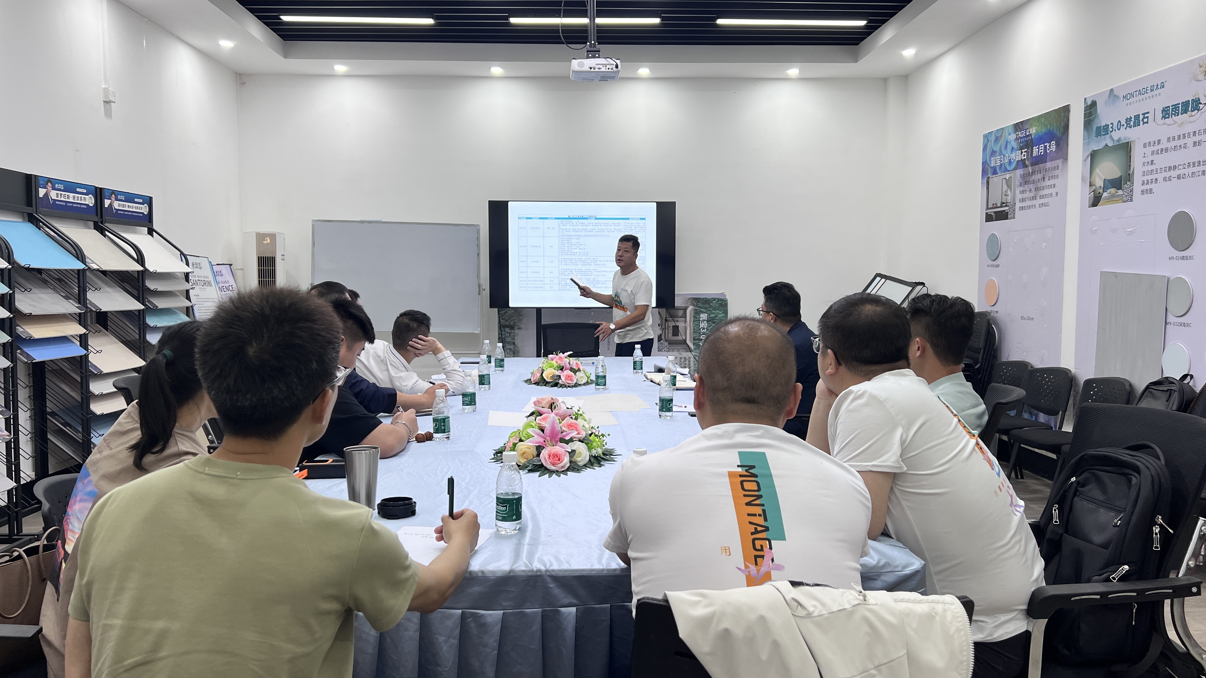 此次特訓營由蒙太奇商學院技術應用總工張純文先生主講,基于蒙太奇產品標準化施工體系,主要圍繞新產品標準體系、產品工藝標準化流程、終端現場施工標準化流程等內容進行全方位培訓,并針對每一項內容對大區經理進行考核評估,真正讓每位大區經理做到以學促干、以干踐行、以行增效。