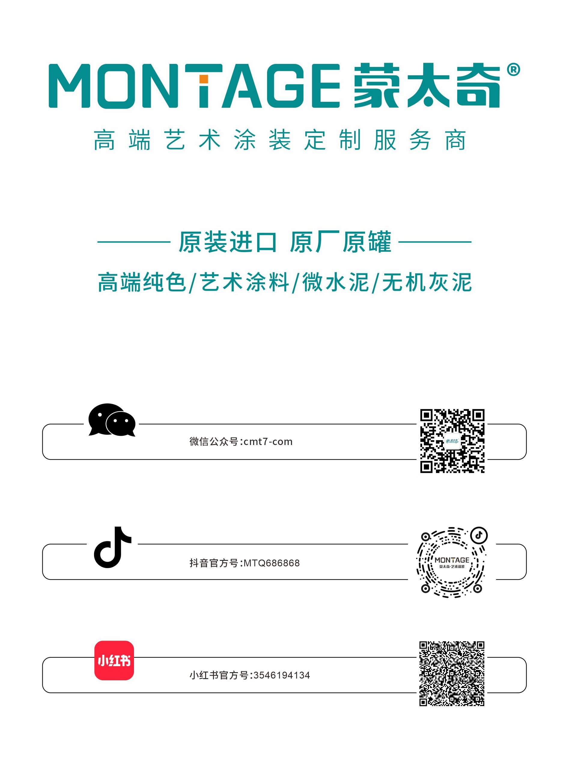 蒙太奇藝術涂裝,專注做高端藝術涂裝的定制服務商,源自英國的藝術涂裝品牌,以“為用戶創造美好空間,為同行者創造價值空間”作為企業使命,致力于成為藝術涂裝產業領創者,為全球用戶提供藝術涂裝一體化解決方案。