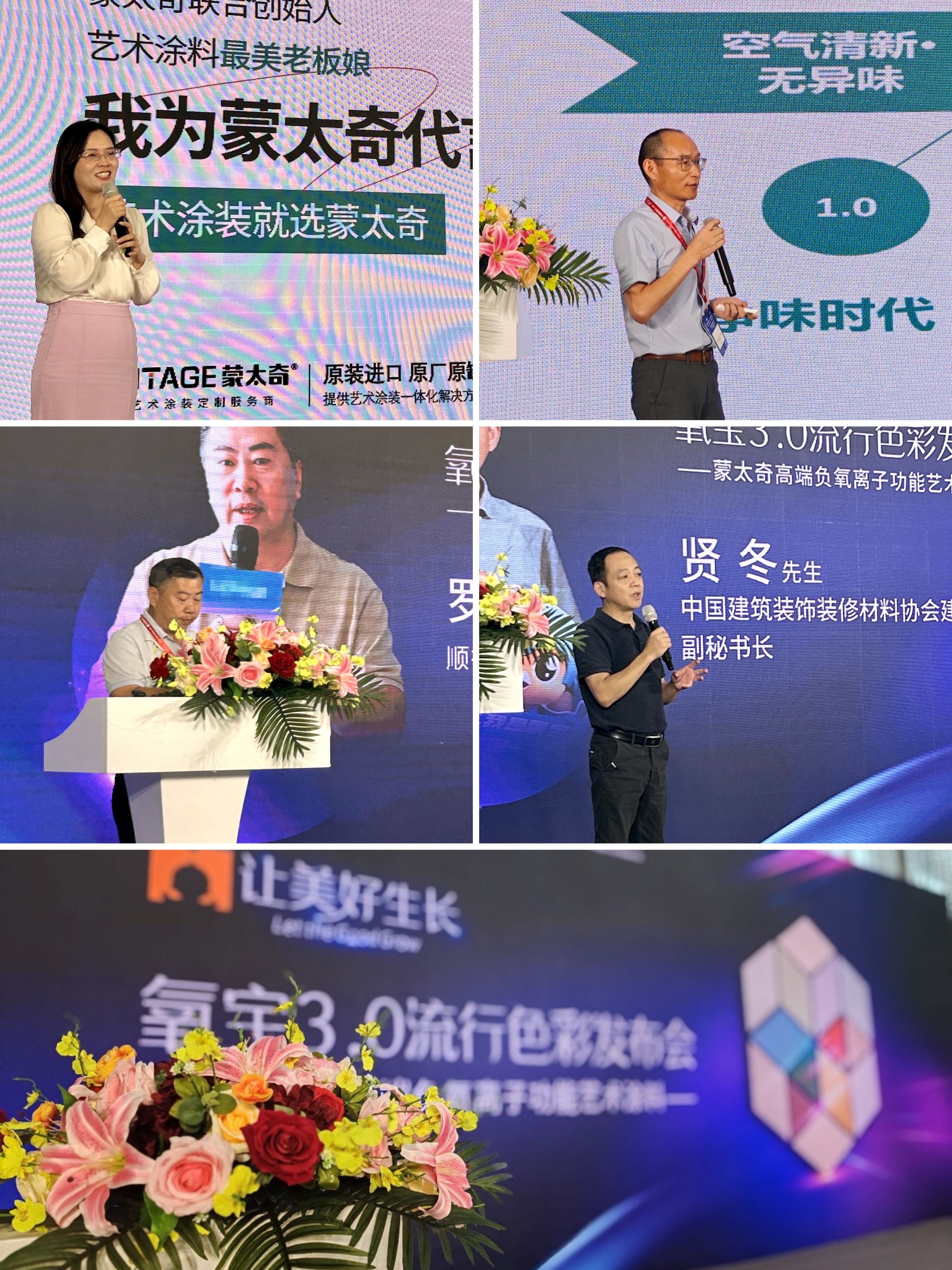 展會(huì)期間,7月10日蒙太奇舉行氧寶3.0流行色彩發(fā)布會(huì),以“蛻變”為主題,將創(chuàng)新技術(shù)與趨勢(shì)色彩美學(xué)融合,為現(xiàn)場(chǎng)的各位行業(yè)協(xié)會(huì)領(lǐng)導(dǎo)、經(jīng)銷商代表、意向客戶以及設(shè)計(jì)師帶來(lái)了一場(chǎng)技術(shù)與色彩美學(xué)的雙重享受。