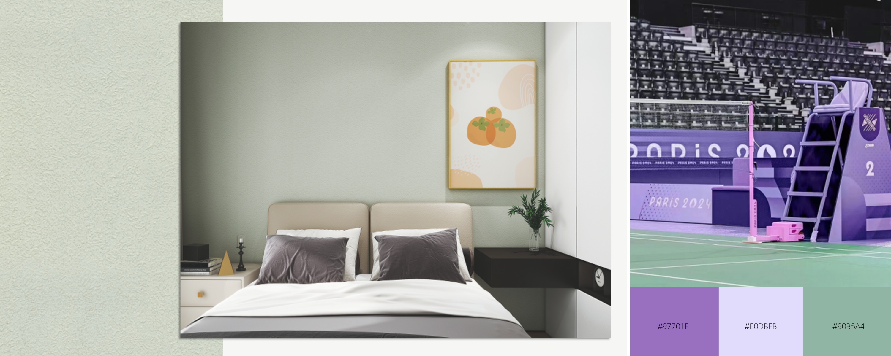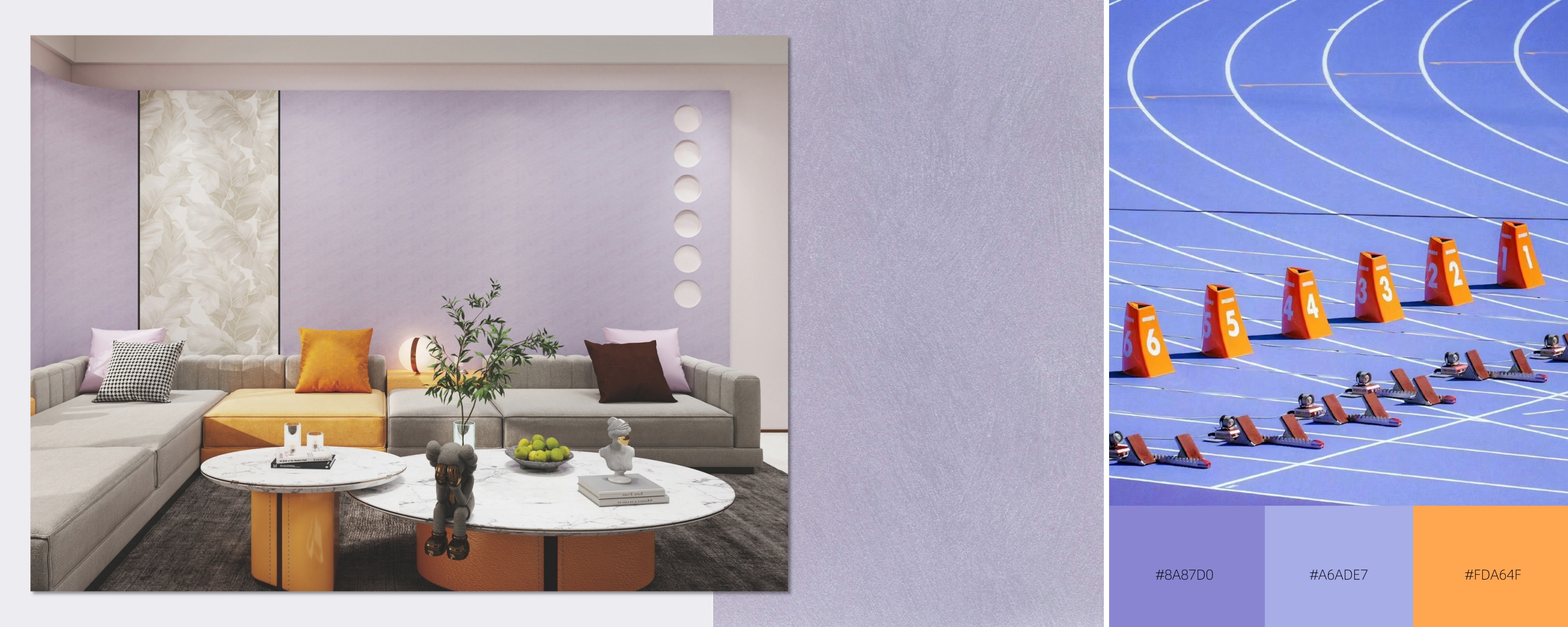 隨著巴黎奧運會這股浪漫前衛的配色風潮席卷而來,我們的家居色彩美學也迎來一場蛻變。而早前,蒙太奇發布的氧寶3.0流行色彩趨勢中,以煥新紫為年度主色調,與巴黎奧運會的主色調紫色巧妙呼應,仿佛是對巴黎奧運會浪漫紫主題的一次精妙預估與深刻共鳴。