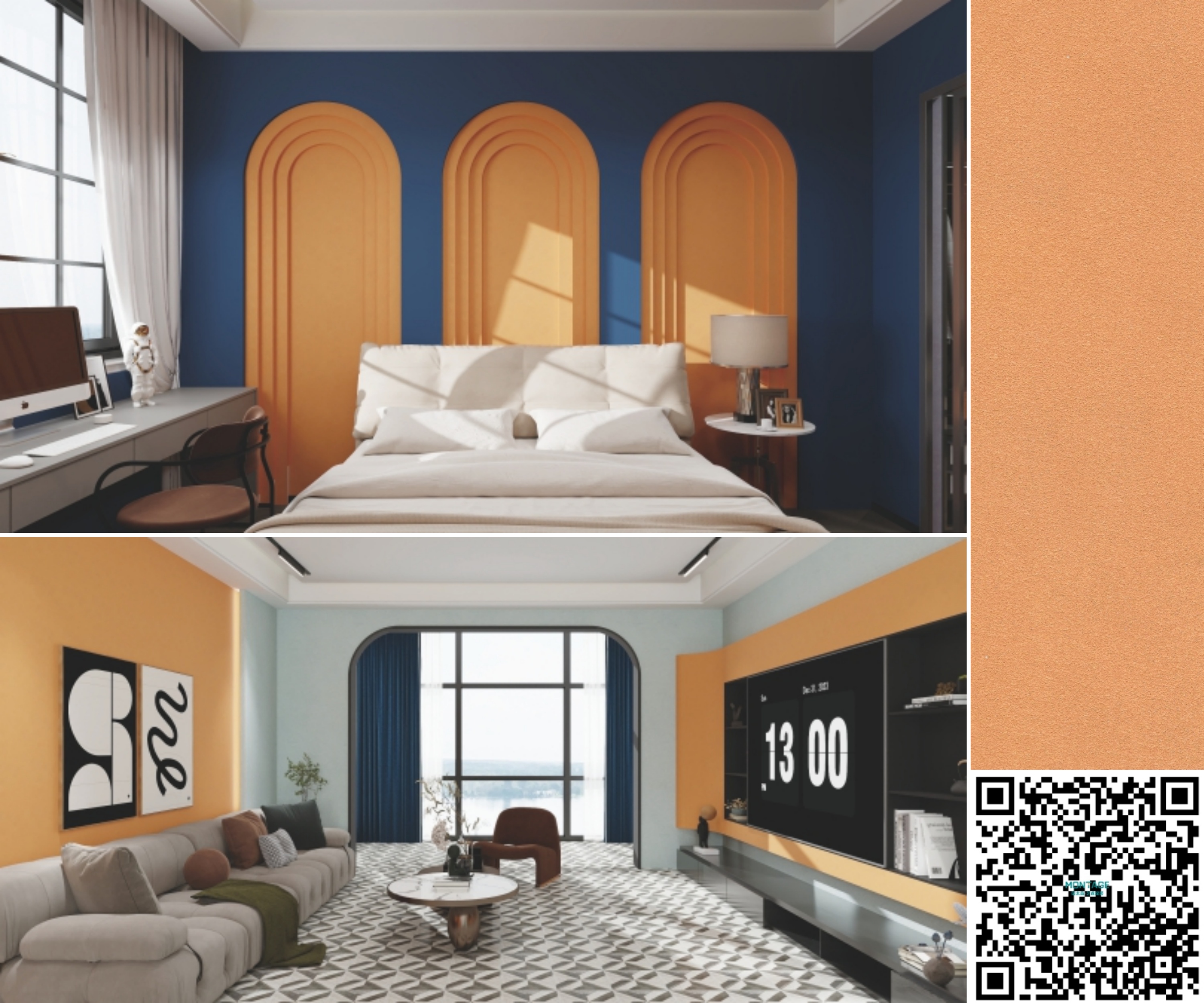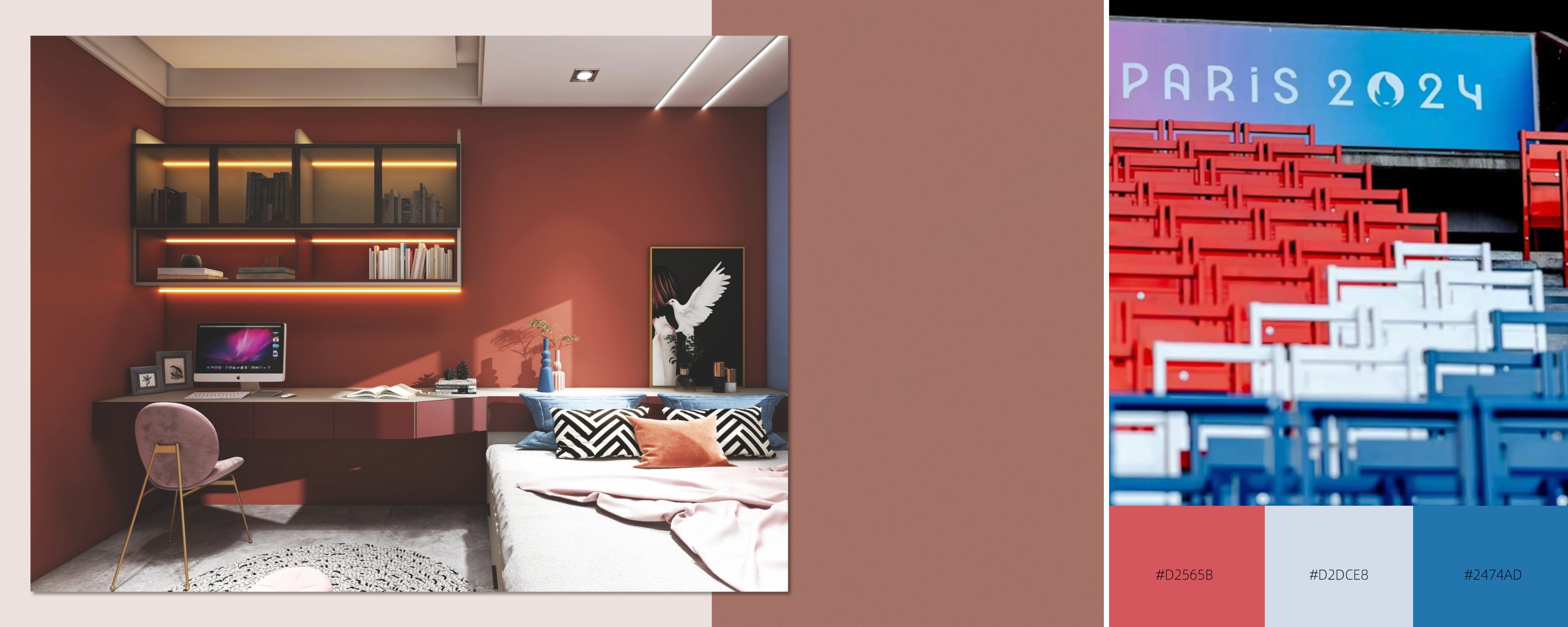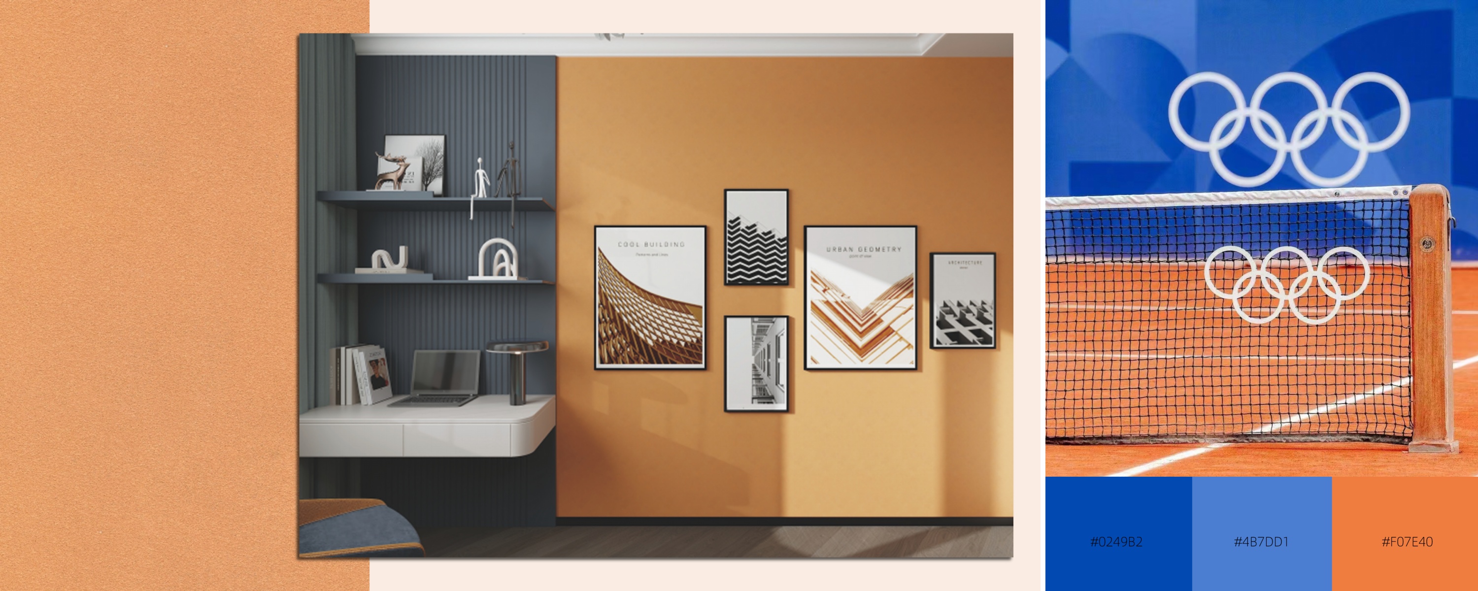 蒙太奇的氧寶3.0流行色彩,運用14種趨勢色彩透過不同的藝術涂料,進行不同的空間表達,其中的煥新紫、奶酪薄荷、琦想橙、離火紅,與巴黎奧運會核心配色紫、綠、橙撞了個滿懷。衍生到家居美學,選擇極具藝術性的配色,大膽的撞色與明快的視覺呈現,為家居色彩美學提供天花板級別的參考。