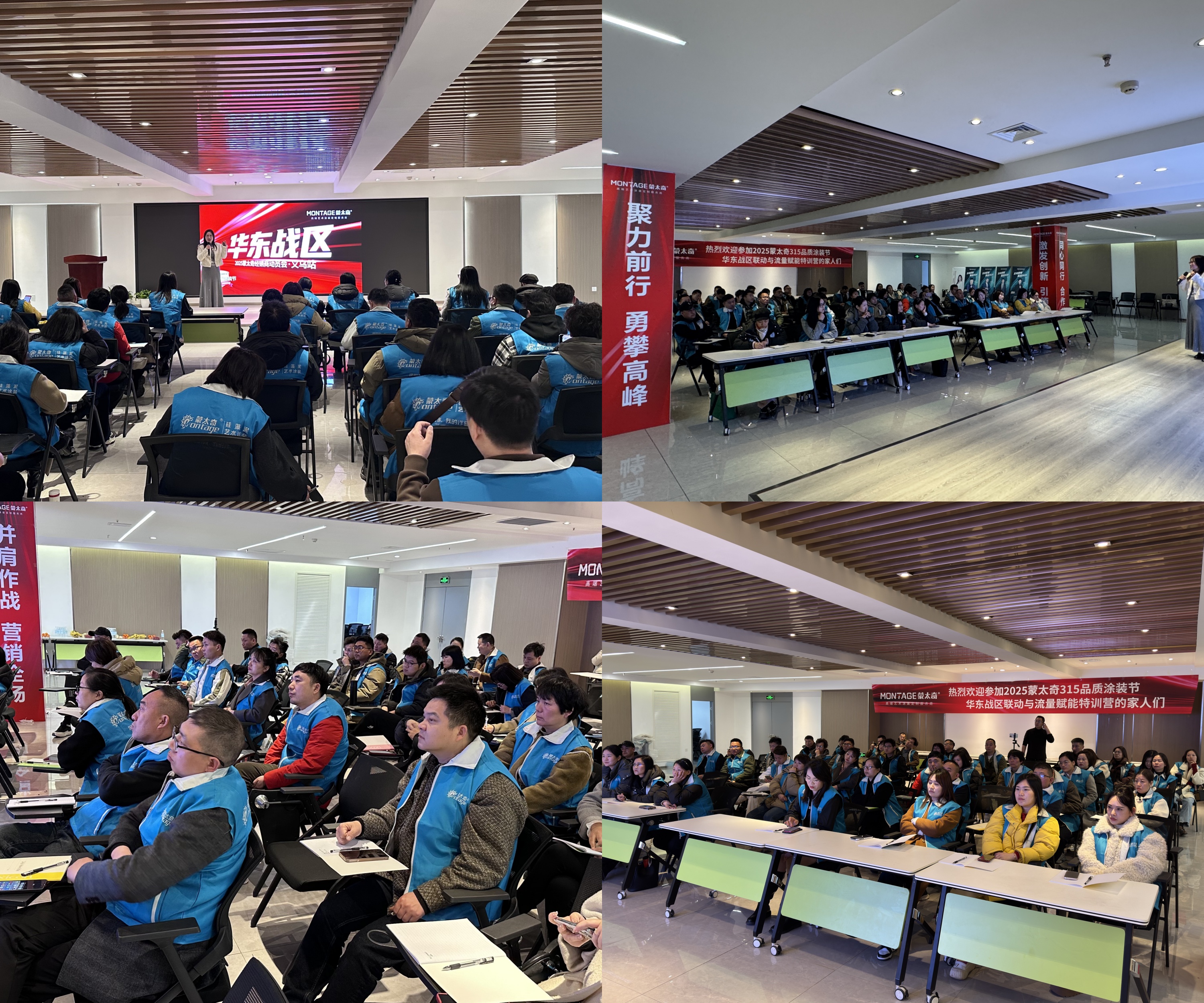 蒙太奇始終堅持“好產品、好色彩、好工藝、好服務”品牌服務理念,基于此,蒙太奇總部全面啟動“贏戰2025終端賦能”計劃。首站特訓營于3月3日至6日在華東戰區順利結營。此次特訓營為接下來的315華東戰區聯動活動做好沖刺準備,贏戰2025!