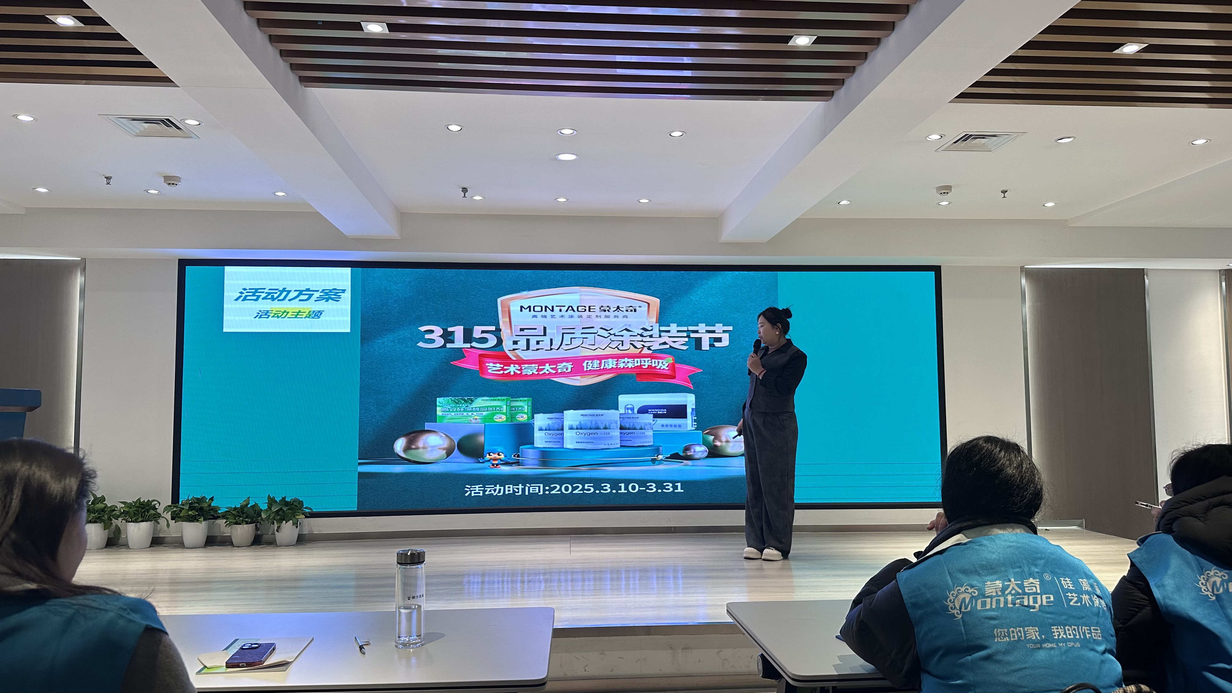 3月6日,蒙太奇315品質涂裝節動員會正式啟動。會上,方總談及這次華東戰區的聯動活動,深入剖析當地涂料市場的發展歷程和優勢,表示華東地區涂料市場前景廣闊,為各門店經銷商注入活動信心。