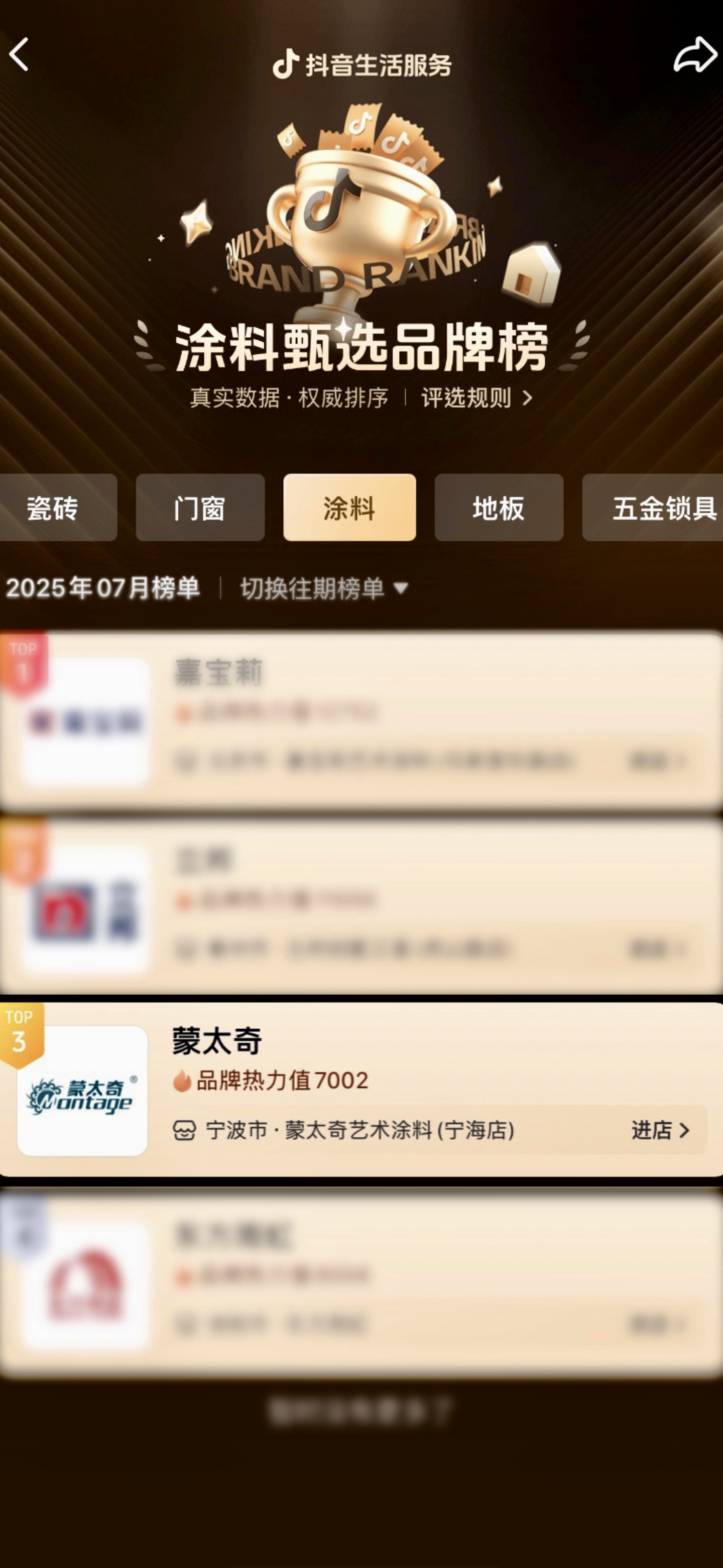 實力見證!蒙太奇榮登【抖音生活涂料品牌榜TOP3】