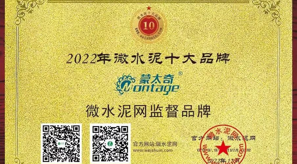 多年的專注與拼搏,全體蒙太奇人的共同努力,蒙太奇致力解決用戶家裝痛點,為千萬家用戶提供微水泥,本次榮獲微水泥十大品牌標(biāo)志著公司的發(fā)展已經(jīng)踏上更高的臺階。