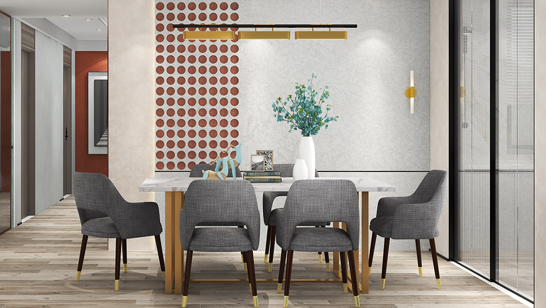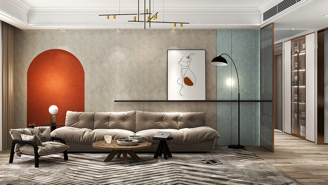 136㎡藝術(shù)涂料三居室輕奢風案例
