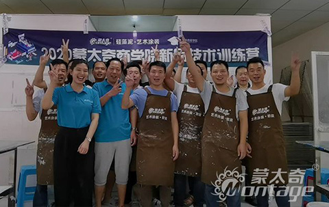 蒙太奇·商學院,成立于2017年,是中國工業協會藝術涂料涂裝分會批準開設的涂料培訓基地,擁有超過78位的技術培訓導師隊伍和多個培訓實操基地,每年輸出專業施工人才近1003名,曾獲得全國 “ 藝術涂裝金獎 ” 號。商學院以涂料運用為中心,產品工藝應用為技術導向,圍繞產品與消費者需求,定期開設工藝、設計、配色等培訓和實戰考核,為行業打造施工團隊、樹立標準化工藝。