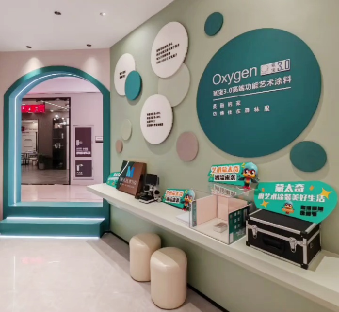 在氧寶3.0體驗區(qū),展示了采用第三代靜態(tài)負(fù)氧離子誘生技術(shù)的氧寶3.0高端功能藝術(shù)涂料,顧客可以在此區(qū)域親身體驗到氧寶3.0系列藝術(shù)涂料所釋放的負(fù)氧離子帶來的神奇效果。