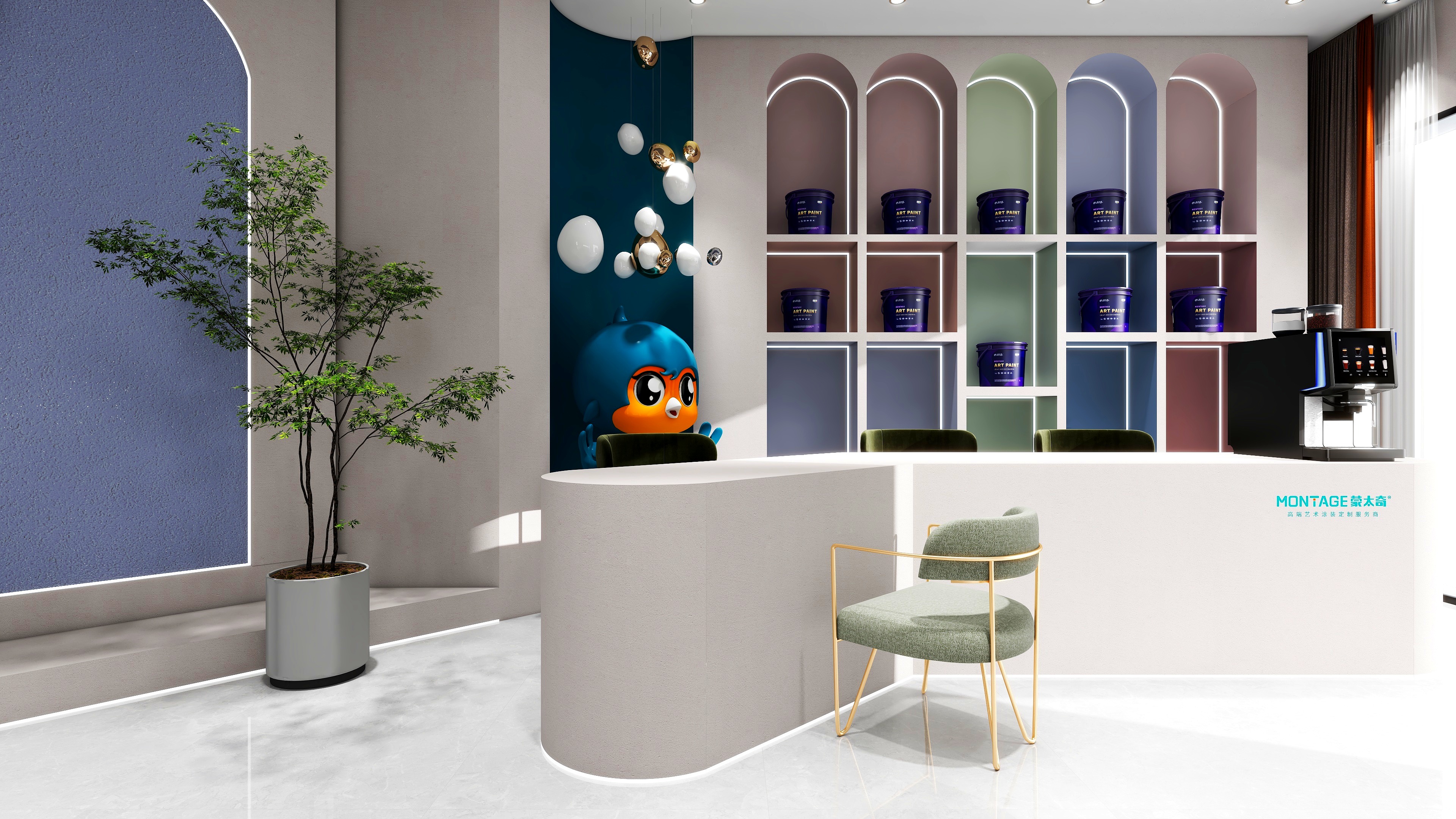以客戶體驗為設(shè)計核心,深化情景化體驗的層次,回歸色彩最純粹的本質(zhì),同時將環(huán)保理念融入藝術(shù)化的生活場景之中,提升消費者的消費體驗。此次蒙太奇東莞萬江店的全面升級,精心打造了氧寶3.0體驗區(qū)、微水泥休閑臺、情景展示區(qū)、沙發(fā)休閑區(qū)、展板區(qū)、接待區(qū)等多個亮點區(qū)域,一起來看看這次的升級蛻變吧。
